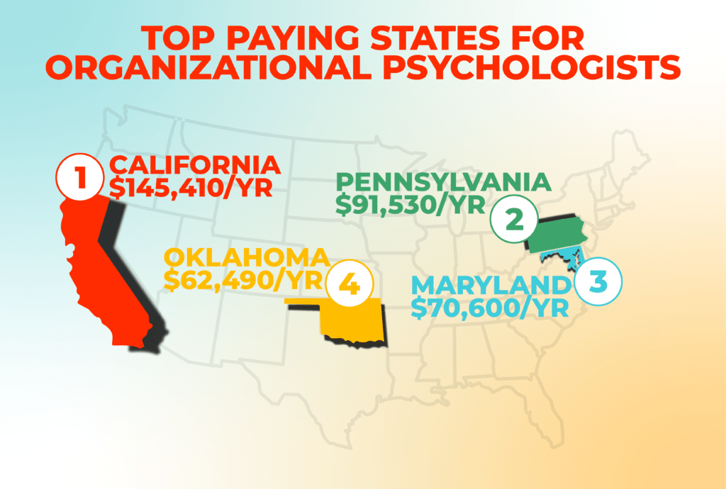 The states with the highest rates of pay for industrial-organizational psychologists are: